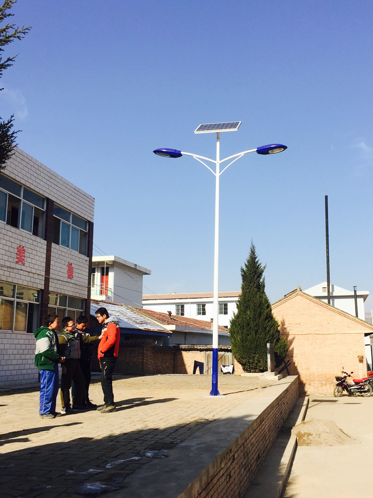 簡介—— 甘肅省平?jīng)鍪袑W校路燈工程,采購的是我蘭光照明單板雙頭太陽能路燈,甘肅的冬季天黑的比較早,為了給校園操場提供照明路燈,安裝節(jié)能型的太陽能路燈,在學校的操場和道路上安裝,給同學們提供夜間照明。